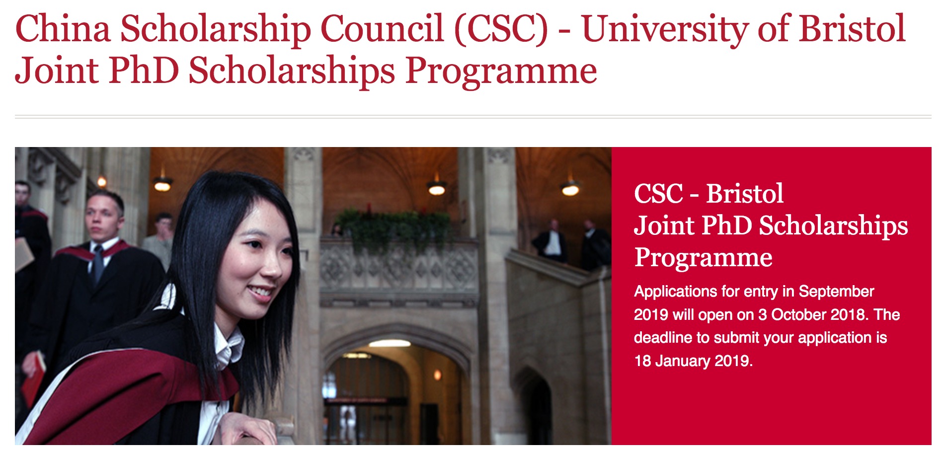 CSC/UoB Joint Scholarship call announced!