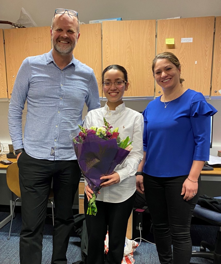 She leaves the group to continue in scientific research at the University of Bath. Best of luck.